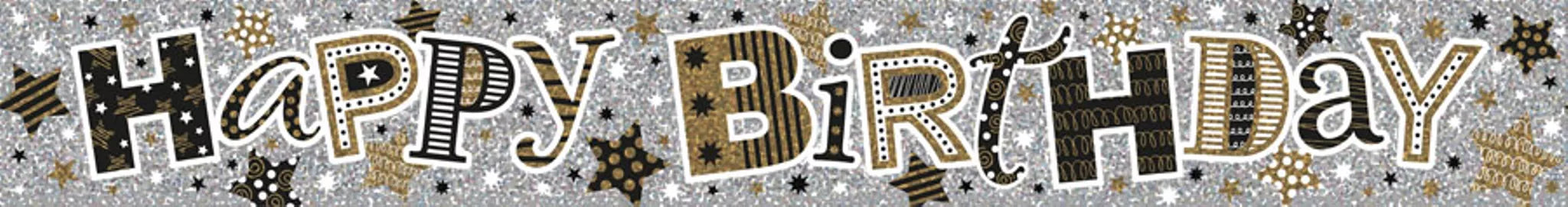 Black & Gold Holographic Sparkling Happy Birthday Banner - 2.6m Long
