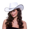 White Hat with silver sequin band detail and trim. Adjustable cord for easy wear.