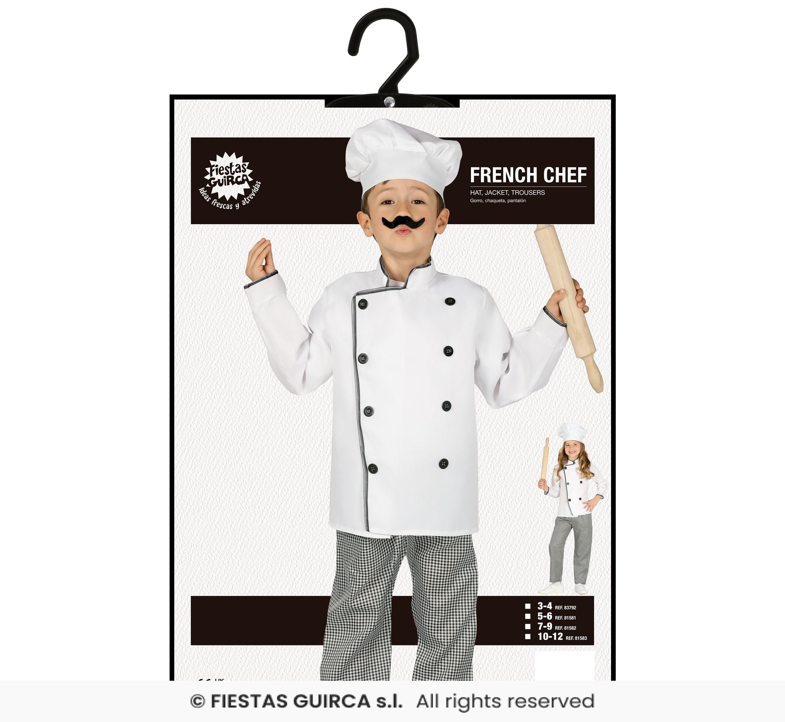Dress-up in this fun Chef's Costume complete with Hat, Jacket and Trousers. Create some mayhem in the kitchen whilst looking the part! Great for General dress-up!